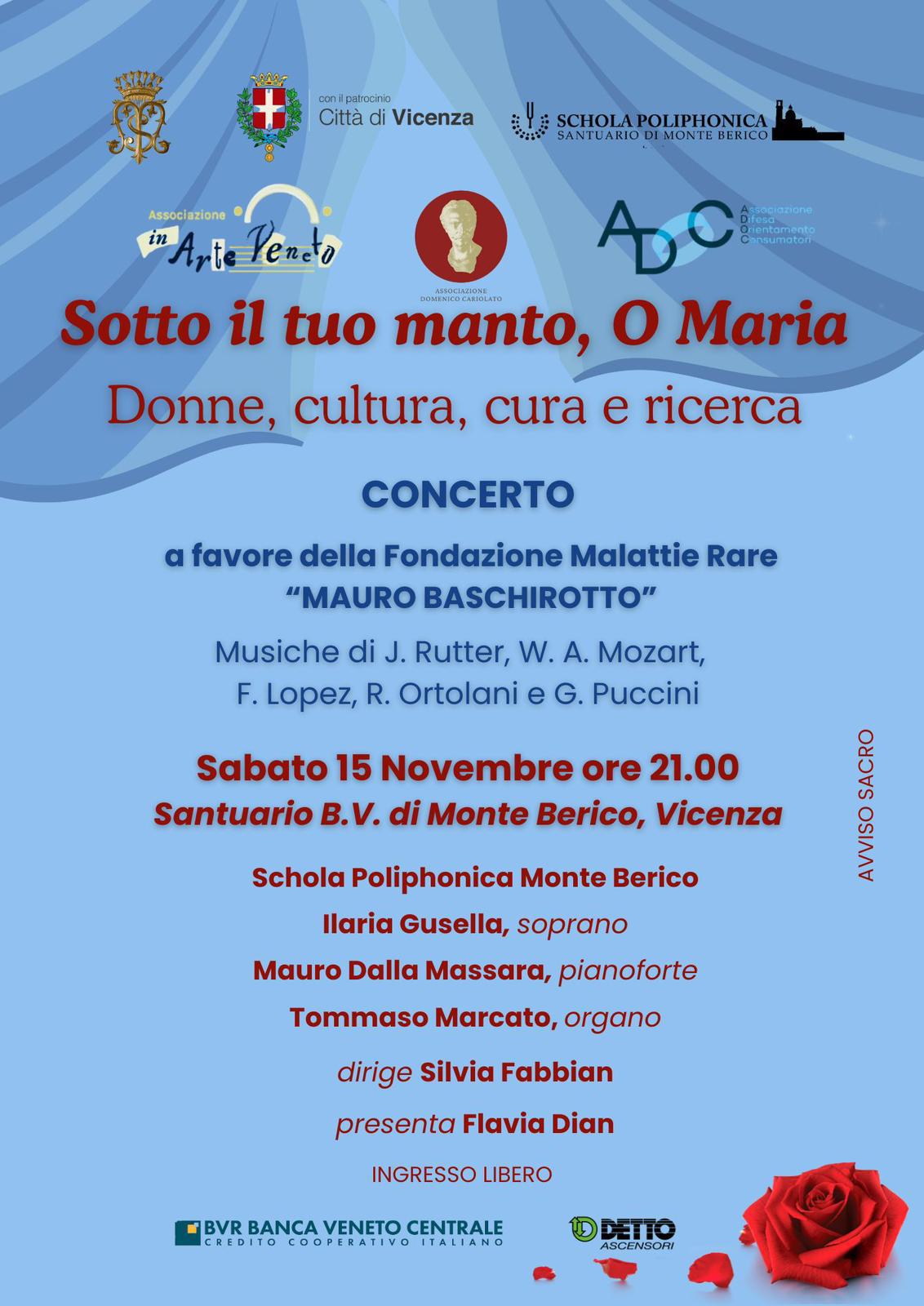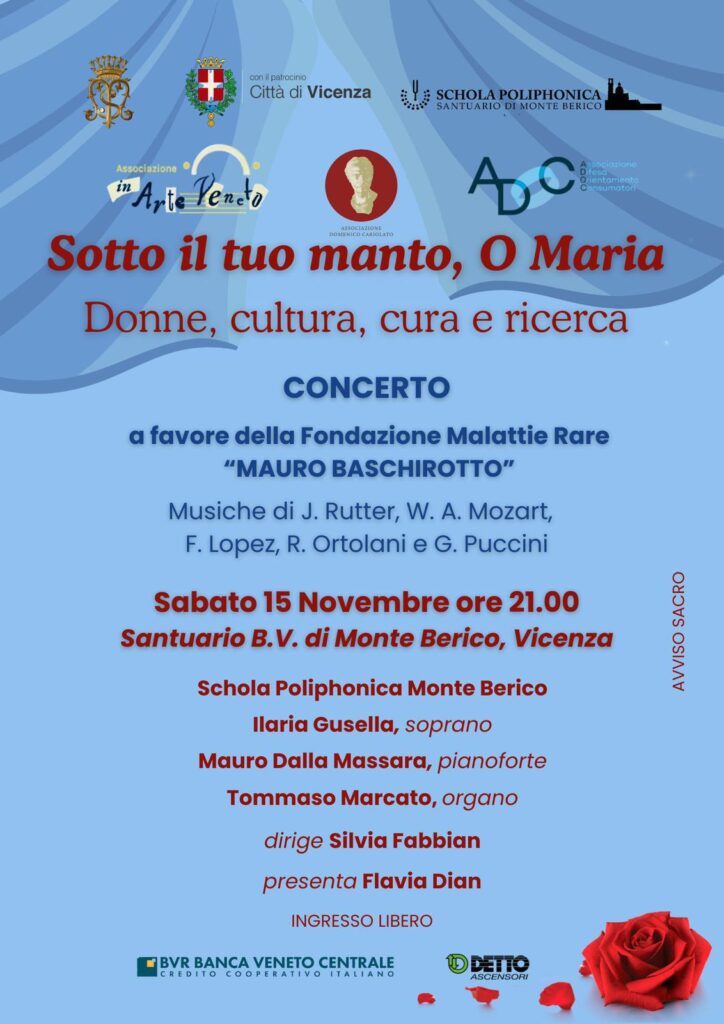 L’evento rientrerà nel calendario delle iniziative del Comune di Vicenza per la giornata di sensibilizzazione contro la violenza sulle donne ed è organizzato da Schola Poliphonica di Monte Berico, In Arte Veneto, ADOC, Associazione Domenico Cariolato.