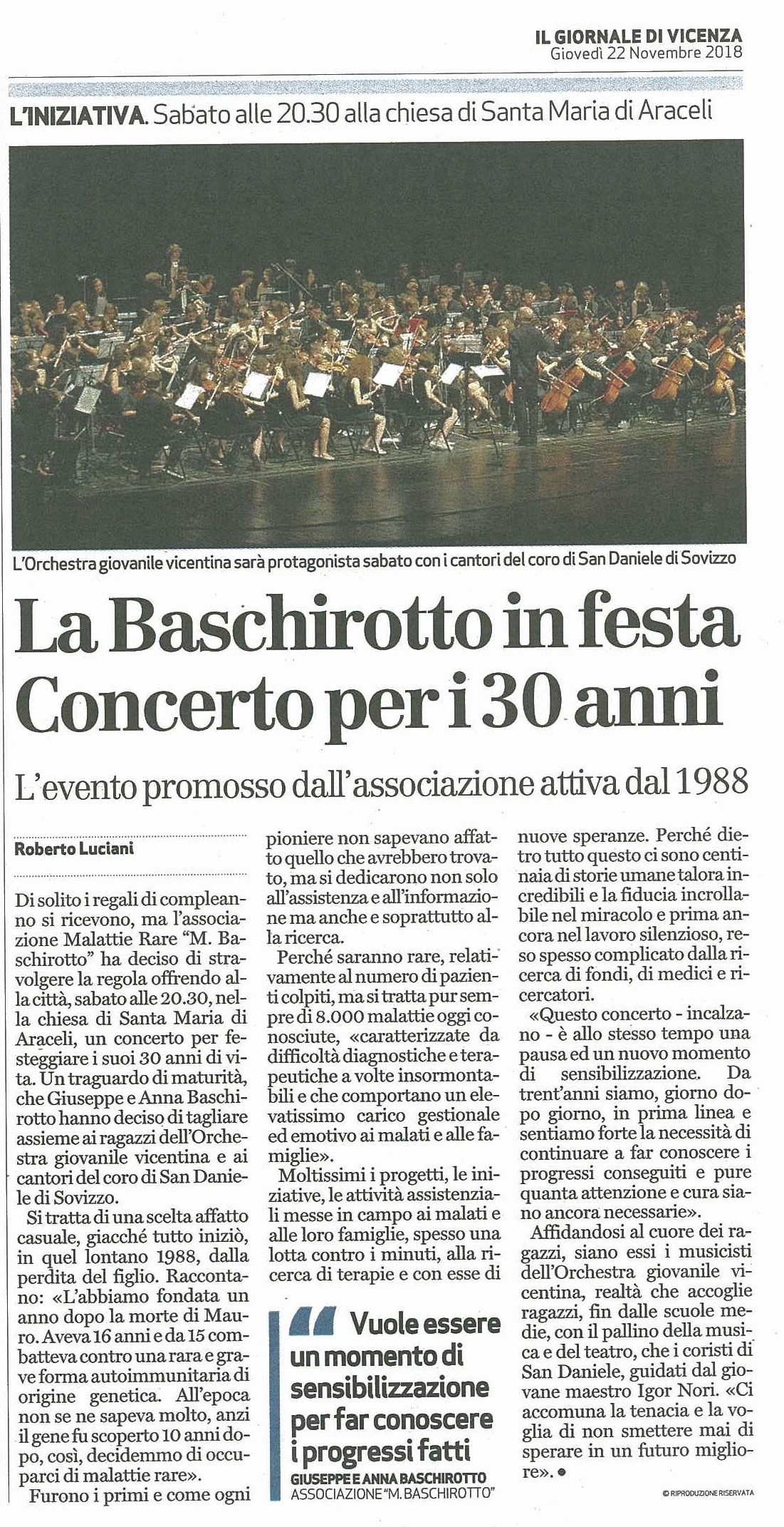 L’Associazione Malattie Rare “Mauro Baschirotto” compie 30 anni.