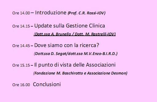Saranno presenti anche i colleghi medici padovani Prof. Rossi, il Dr Rastrelli, l’oncologa Dott.ssa Brunello da parte dello IOV, mentre da parte nostra ci saranno le Dott.sse Segat ed Enzo e il Dr. Hladnik che illustreranno i progressi della ricerca. Un altro essenziale tassello verrà posto nella battaglia contro questa malattia che, da anni, mette in ginocchio decine di pazienti in Italia.